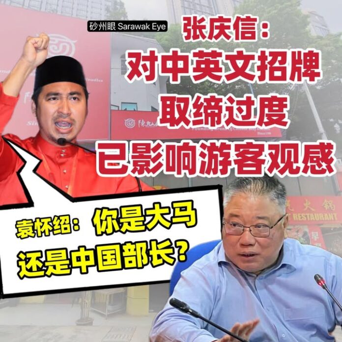 3. 近期,我国旅游部长张庆信发文表示,对中英文招牌的过度执法,不符合我国多元国家的形象,也影响游客对旅马的决定。甚至已经有游客问他,马来西亚是种族、宗教主义极端的国家吗?