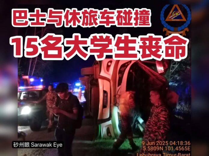 今日凌晨一时左右,在Perak宜力,一辆载有UPSI苏丹依德理斯师范大学学生的巴士,与往同一方向行驶的休旅车发生严重碰撞。