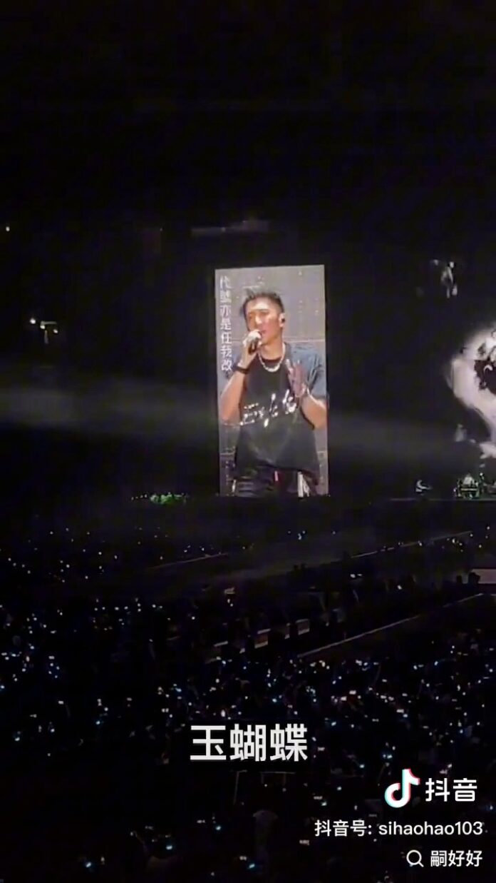 谢霆锋没有投mic给歌迷,他对着几万人的面,深情的样子,唱着玉蝴蝶。