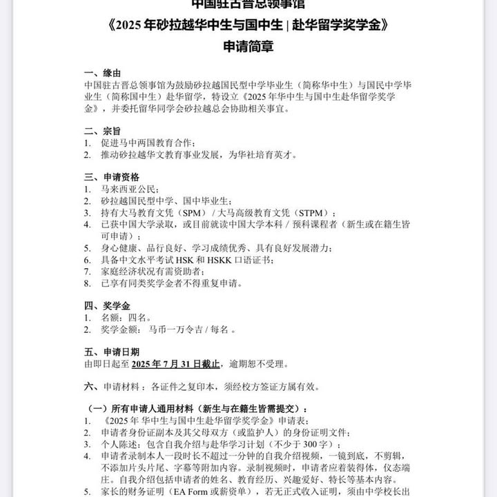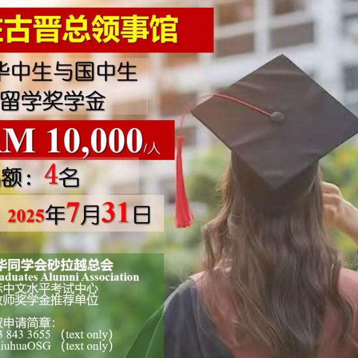 同时,国民型中学和国中毕业生也有机会申请奖学金,同样是每个人1万令吉,申请截止日期为7月31日。只有4个名额。