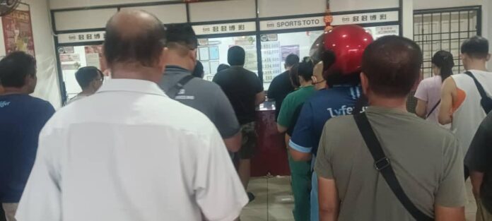 多多投注站已经很久没有看到这么热闹的人潮,还有10分钟,看看財神爺会看到谁。