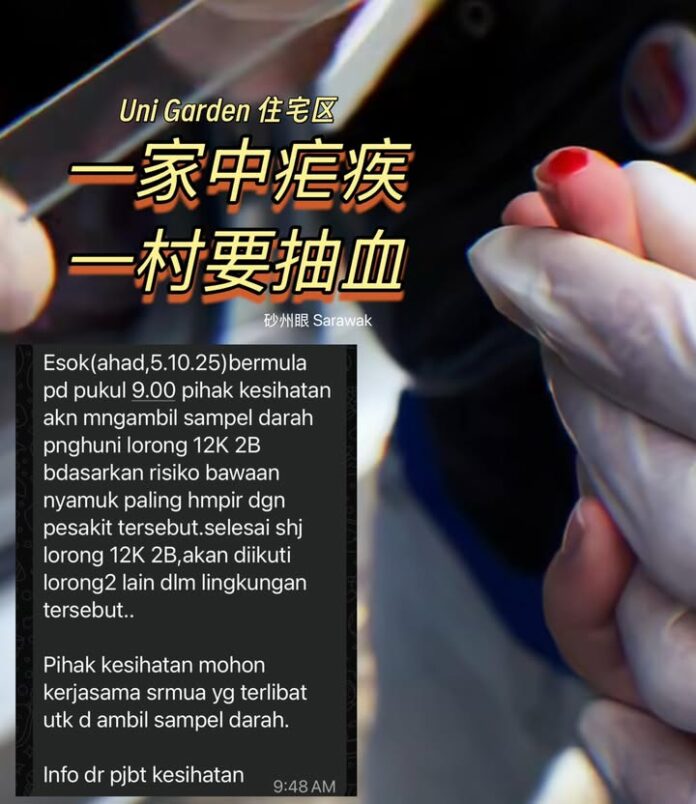 据说Uni Garden一带有人中疟疾,卫生局官员担心是外来病原,为了安全起见,也从昨日开始为居民进行验血。