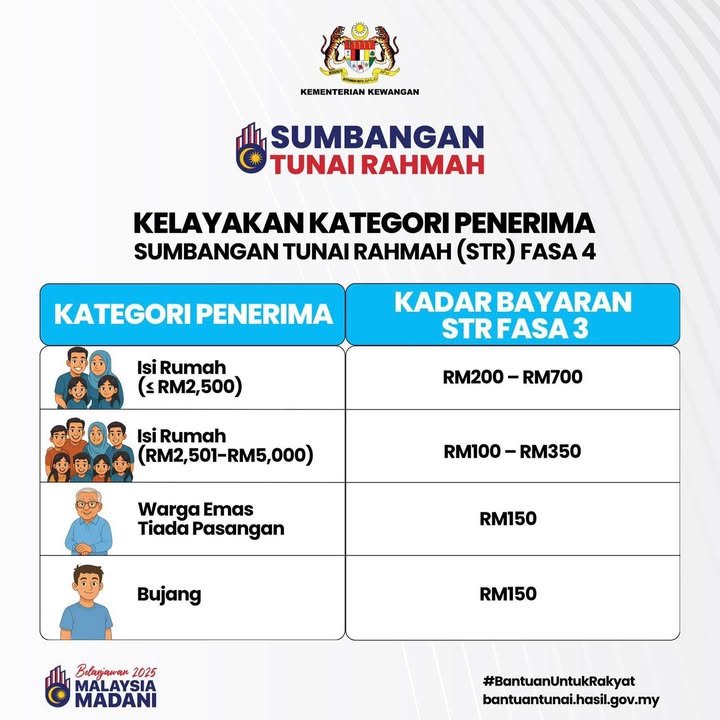 受惠家庭最高可获得RM700,符合资格的单身者也可获得RM150: