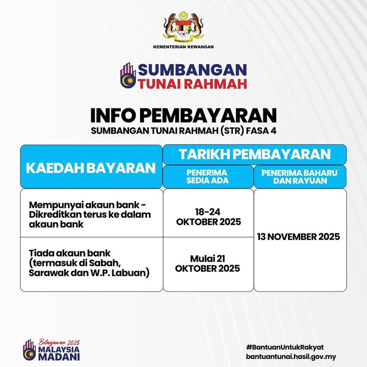 原本是预计在11月发放,为了给大家过屠妖节,所以提早发放。财政部也表示,这次还有20万名新的受惠者,他们的款项将会从11月13日开始发放。