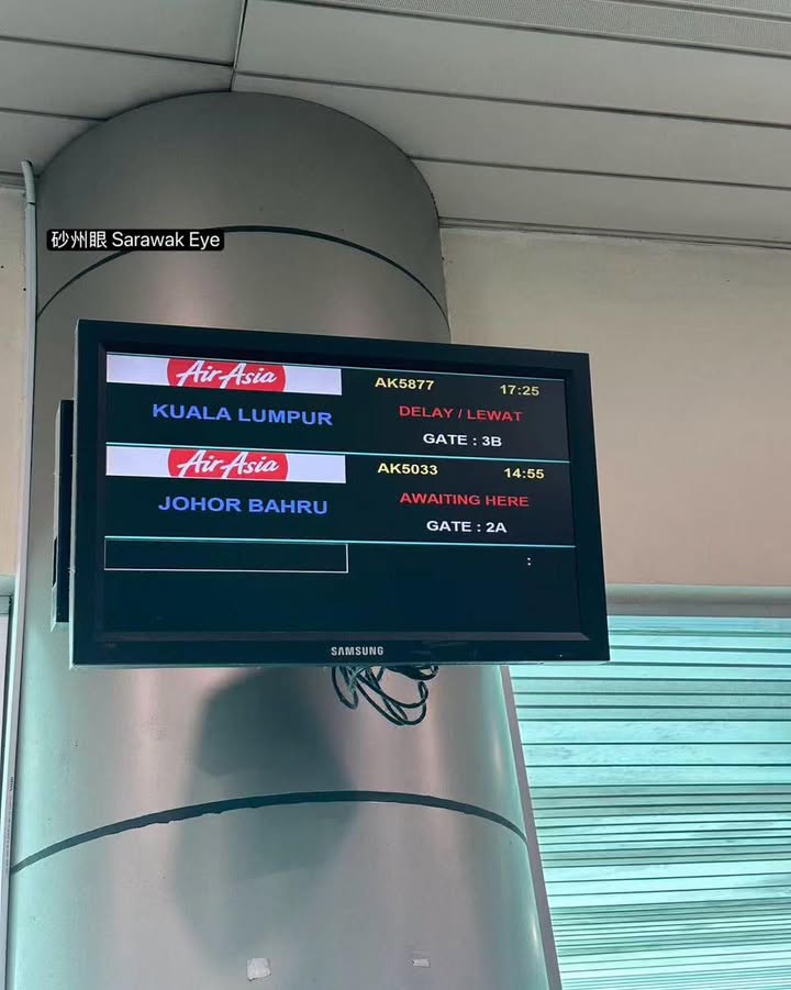今早亚航Sibu飞往KL的班机大延误,原本预计早上8点50分飞的班机,因为技术问题,宣布延误了3次。
