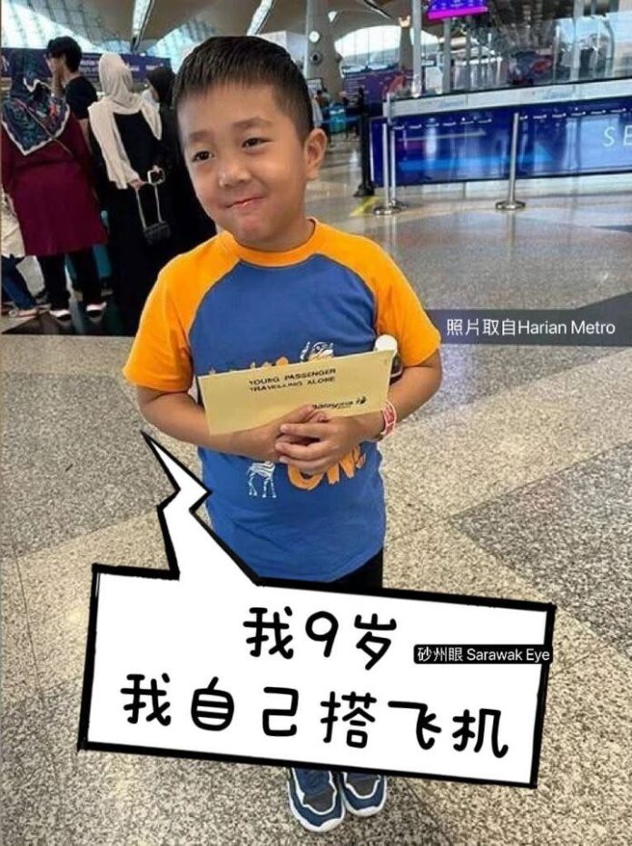 这名可爱小弟弟9岁就体验了自己搭飞机回来砂拉越咯!但你会放心让孩子一个人搭飞机吗😅