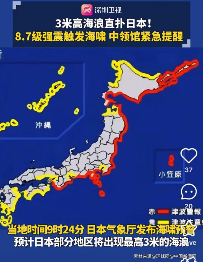不过,令人担心的事海啸已抵达日本,预计下午可能抵达台湾。