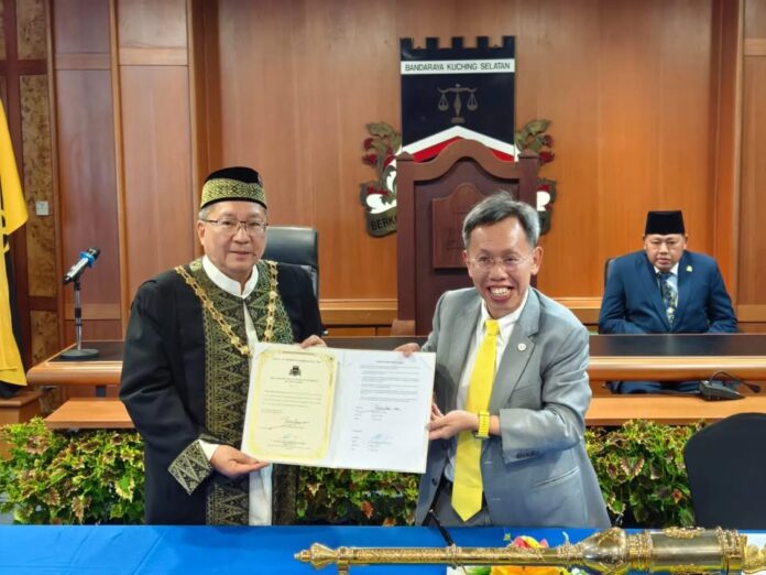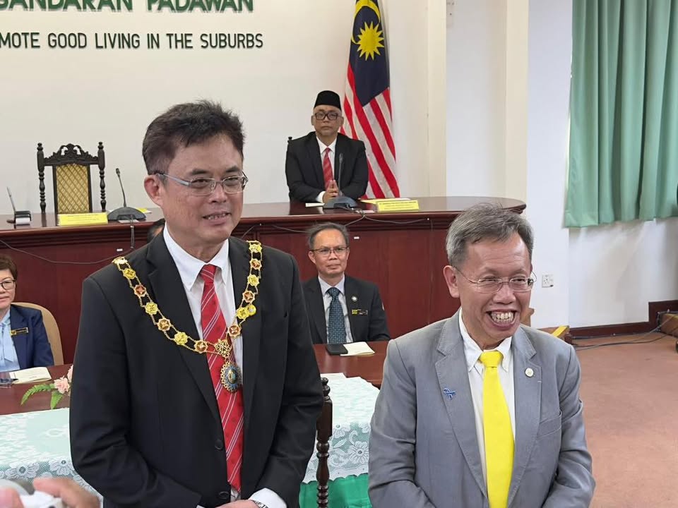 恭喜古晋南市市长拿督黄鸿圣以及巴达旺市议会主席陈开,昨日再重新获得委任3年任期至2028年。