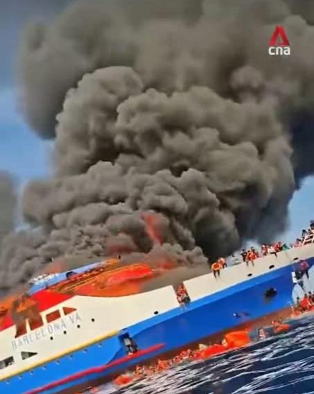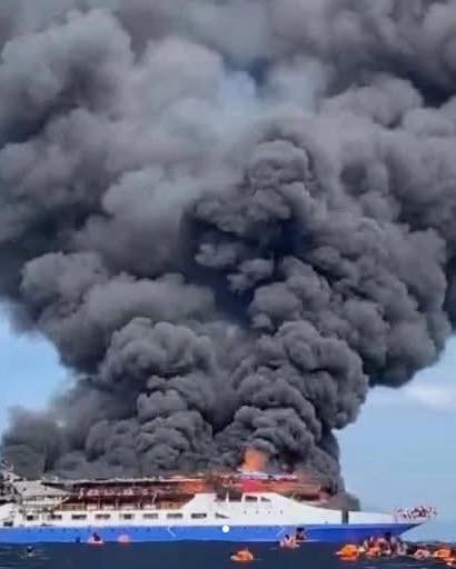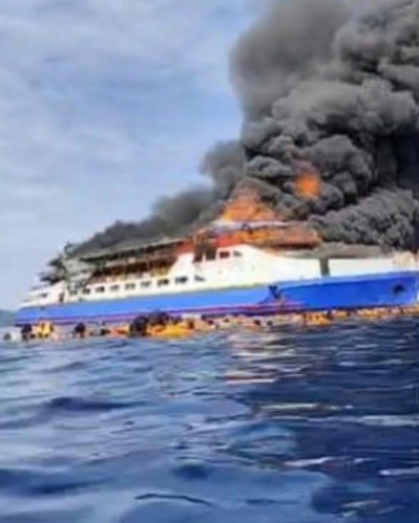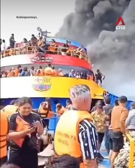 印尼一艘搭载超过280人的客船“KM巴塞罗那5号”昨在北苏拉威西省塔利斯岛海域突发火灾!🔥
