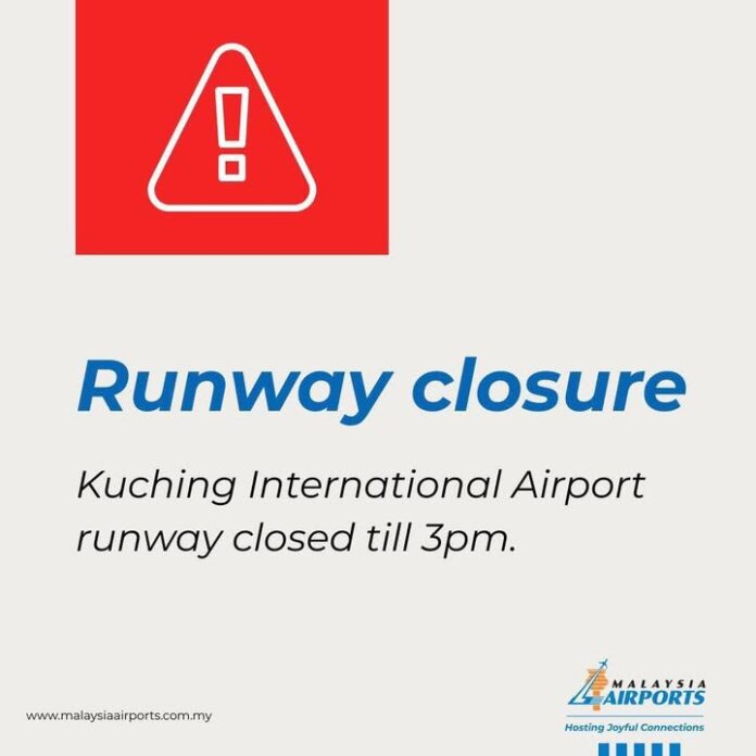 古晋机场跑道暂时关闭,预计下午三点才重新开放,很多人的航班也受影响。