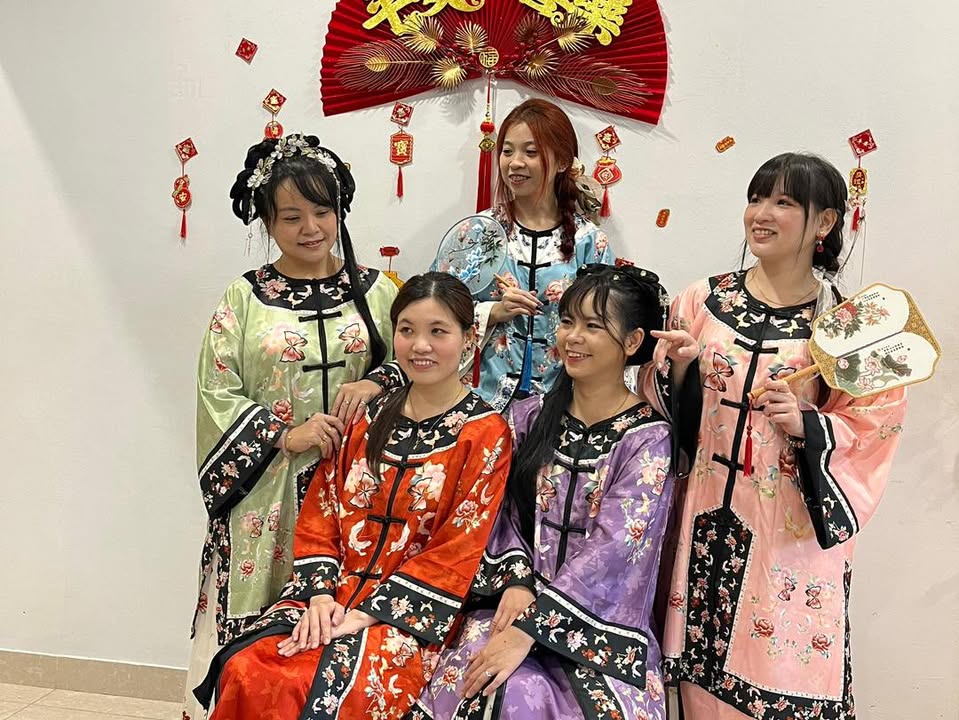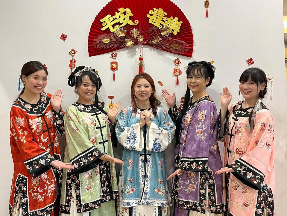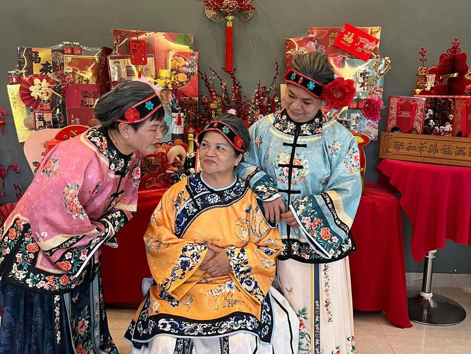不止女儿姐妹们爱玩爱打扮,妈妈们也很配合,拍起照来特别开心。很有过年的感觉。