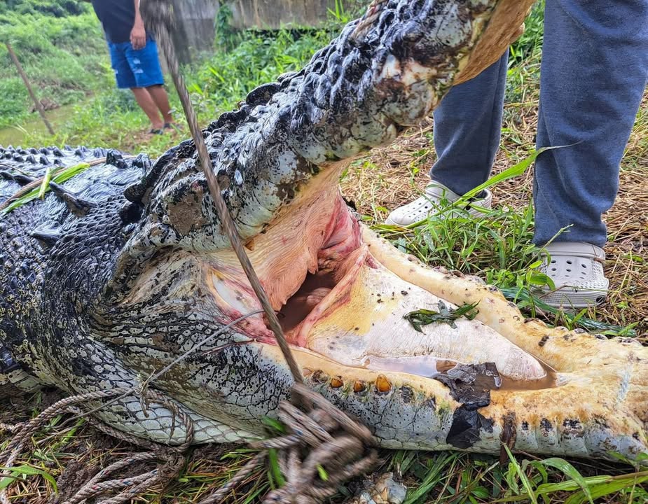 捉到那么大的鳄鱼,不知道它多少年纪了。据悉,这应该是只老鳄鱼,它的牙都没了。