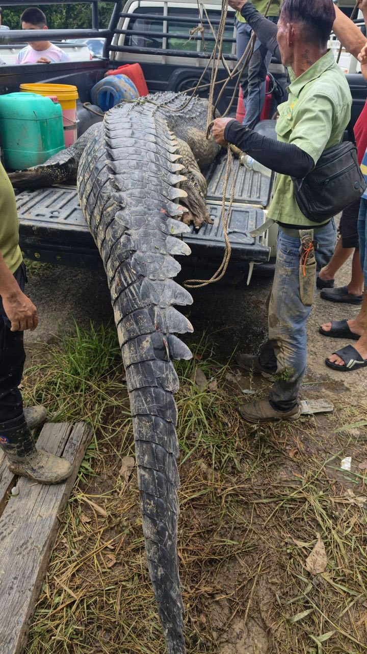 古晋Siniawan这两天的热门话题,补获一只超过500Kg的大鳄鱼。