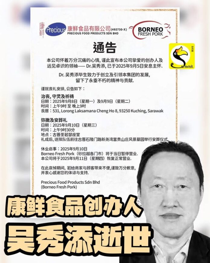 他的遗体将在明天(9月7日)送回古晋,并在8日和9日开放给亲友做最后的告别。