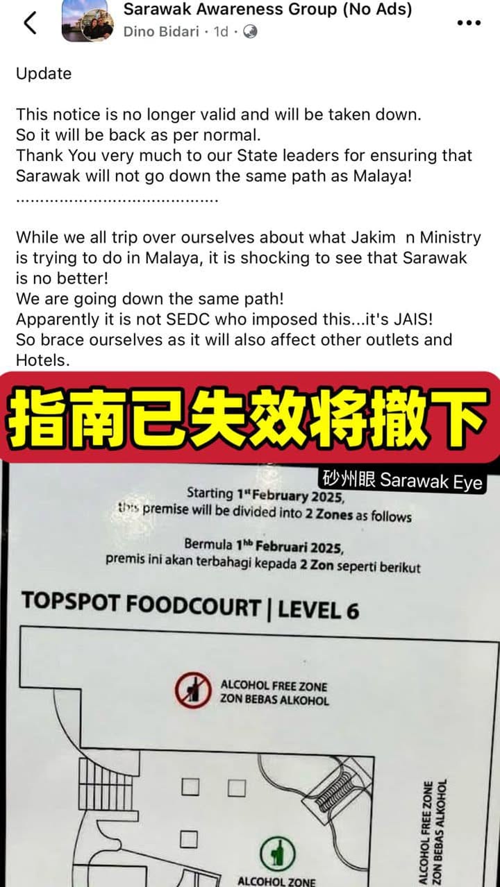 在砂拉越实行区分喝酒区及非喝酒区的SOP撤回了!
