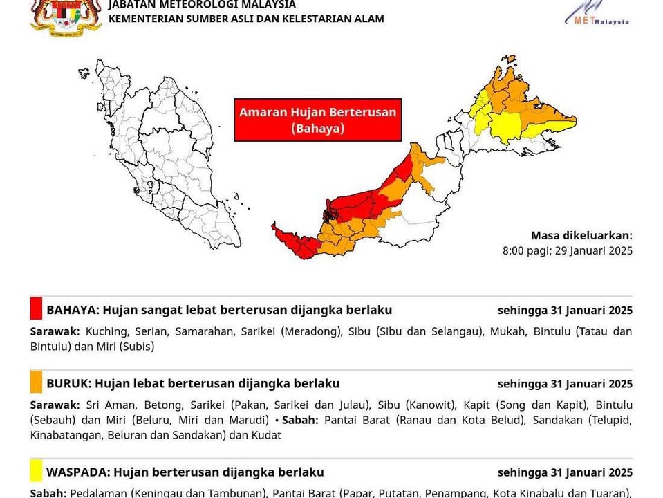 大马气象局已经对砂拉越的天气发出警报,直到31号,都会有持续的狂风暴雨。