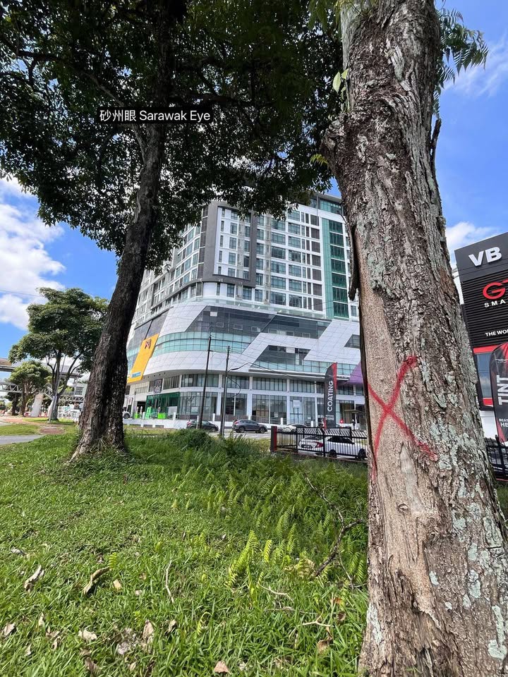 刚好看到被打叉❌的树,The Spring对面的树已经砍了一半,接下来的一半,也会继续倒下吧。