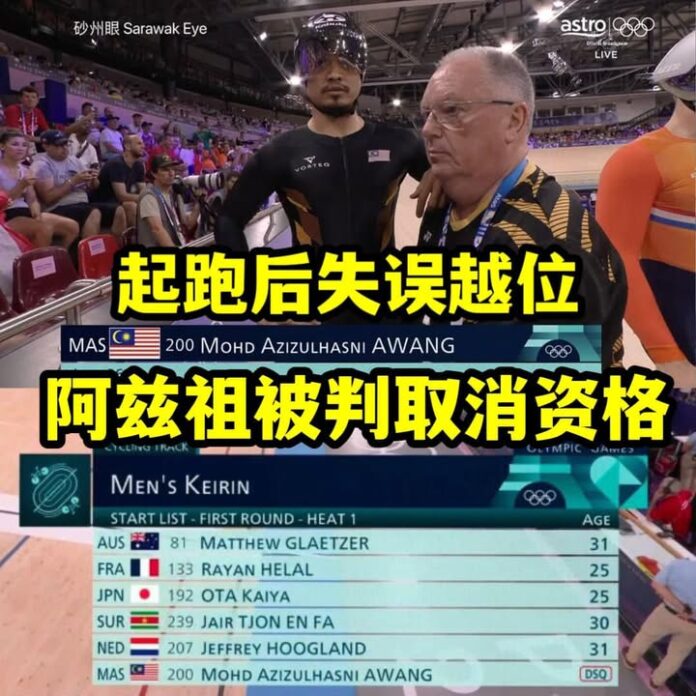 昨天受访信誓旦旦表示自己今天的比赛只要金,不要银和铜牌的阿兹祖,今晚的比赛,在引领车带完3圈后,抢位时指超越尚未完成退场的引领车被判犯规,直接取消资格,被淘汰出局。