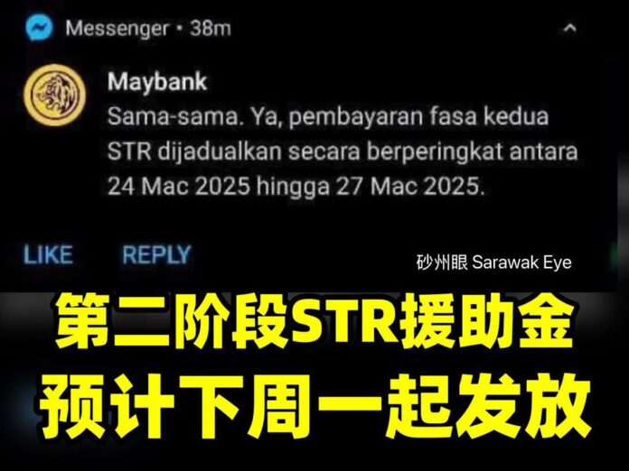 第二阶段的STR援助金,会在开斋节🌙之前发放!