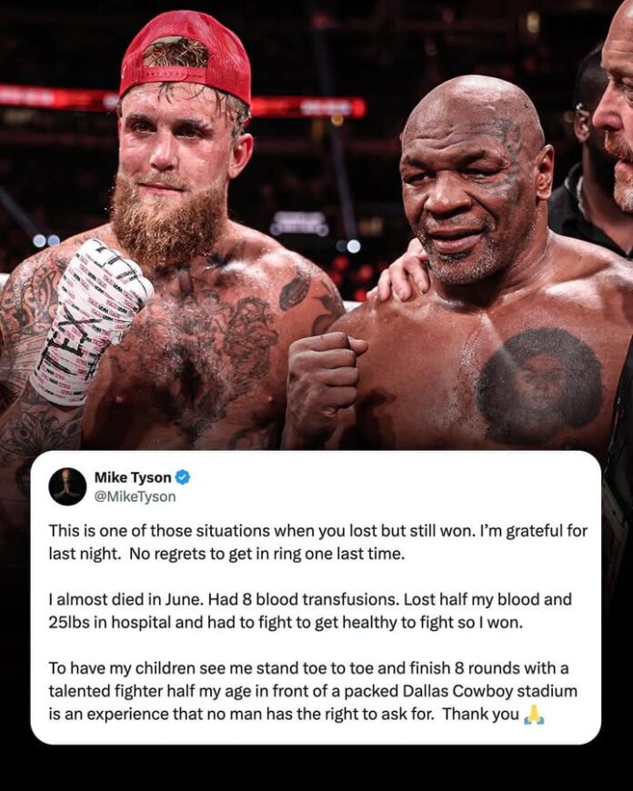 泰森这场比赛据说也是为了生活,最后输了但精神永在。向所有超越年纪的奋斗的人们致敬🫡