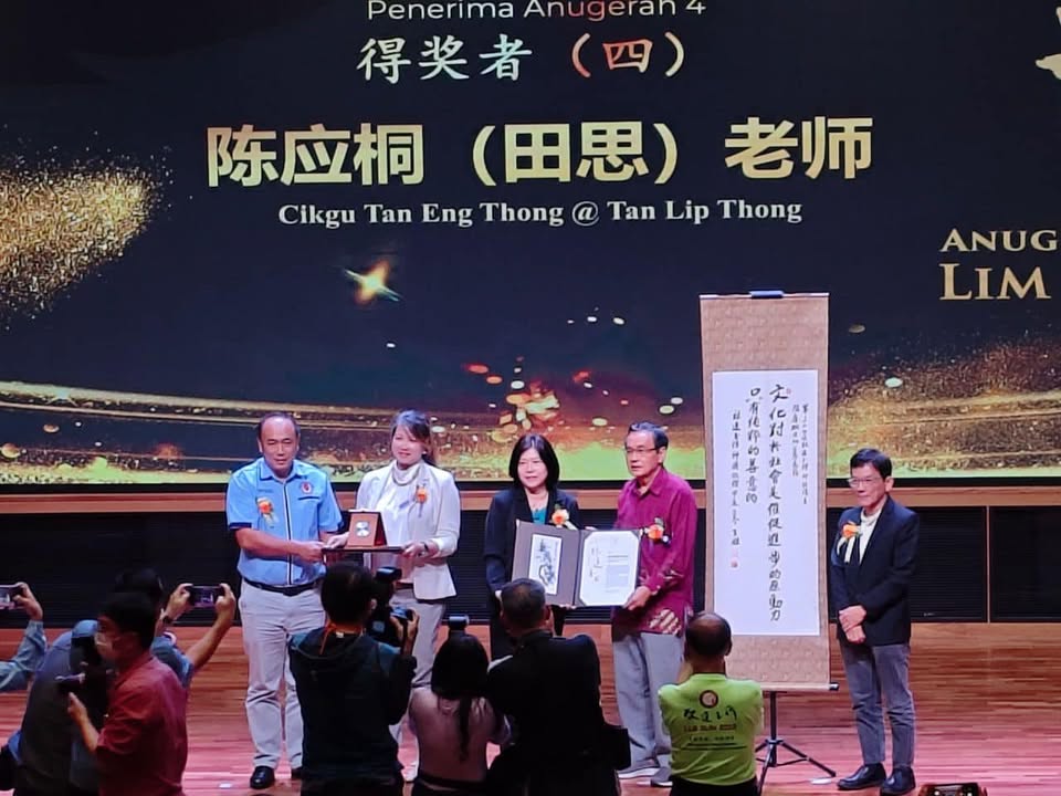 原名陈应桐的田思老师曾是一中教师,也是我国著名的诗人和散文家,出版超过25本书。除了教育学子,耕耘华教,还积极于推动华乐,被评委认为有良好的身教示范,获得林连玉精神奖是实至名归。