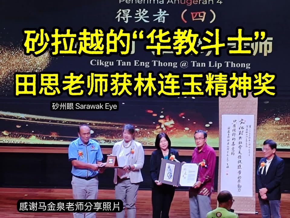 恭喜田思老师获得“林连玉精神奖”,颁奖典礼在吉隆坡尊孔独中举行,5名得奖者中,田思老师是唯一砂拉越得奖者。