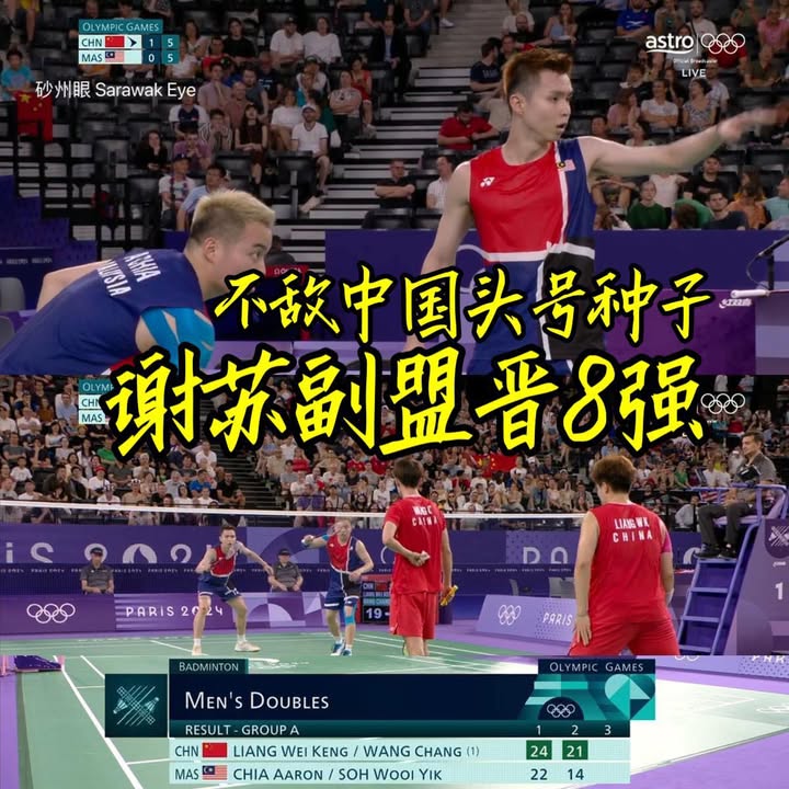 恭喜!今天的奥运会,大马羽球男双和女双也打进8强了!
