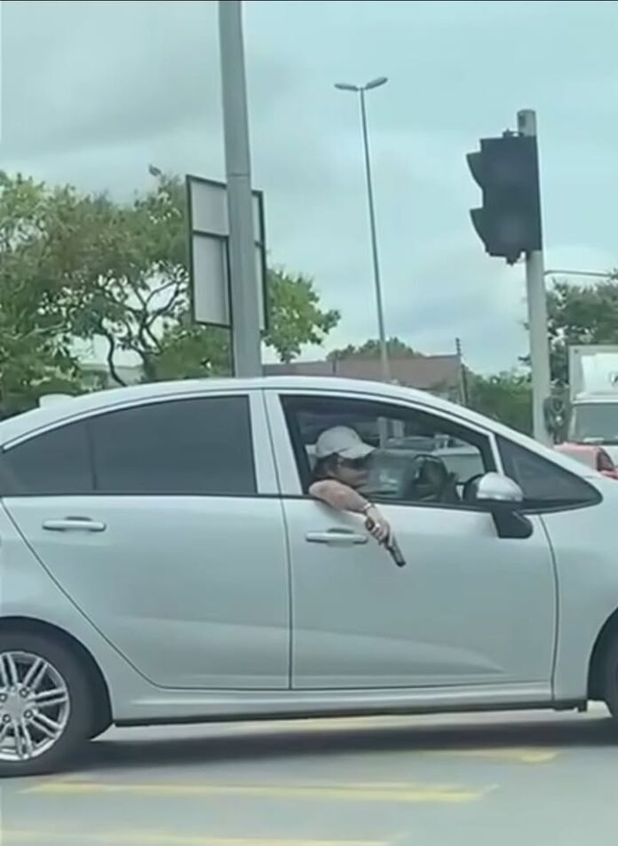 今天古晋传开的一名戴墨镜戴帽子男子,在砂中央医院附近,从车窗亮出一支手枪,装模作样一番就开车离去,而引起恐慌。