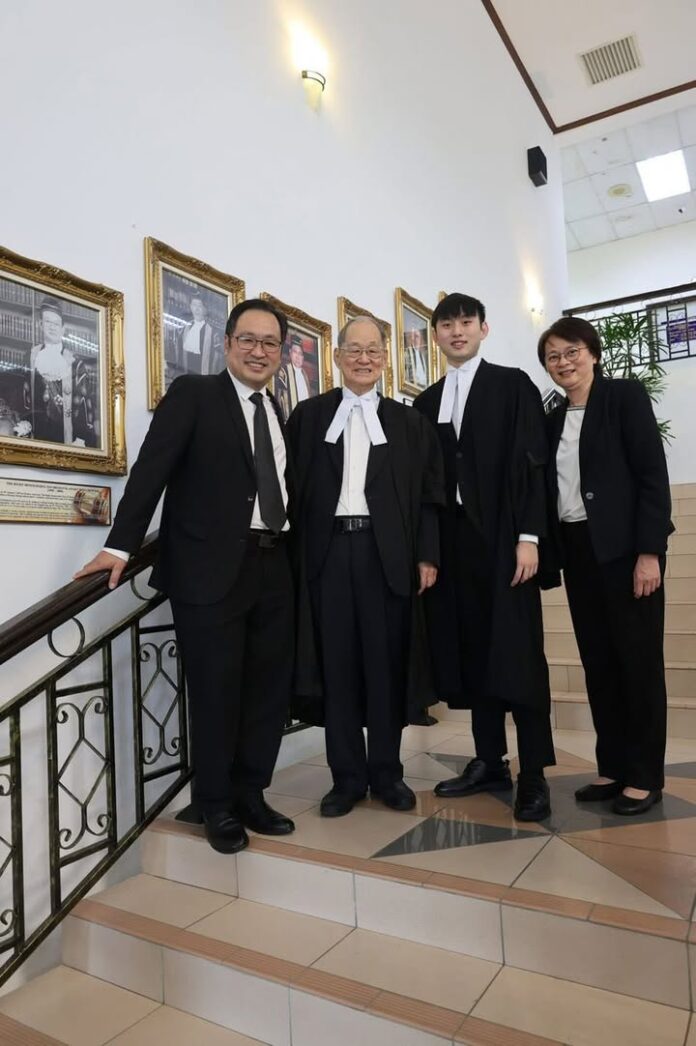 YB张健仁在脸书分享儿子张翰贤正式在古晋高等法庭披上律师袍,成为了执业律师,踏上父亲与祖父的同一条法律之路。