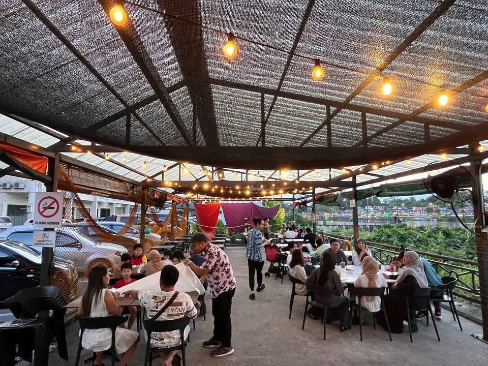 来到市区的Padungan后面靠河那里,一边观赏河滨风景一边吃海鲜。痛快!