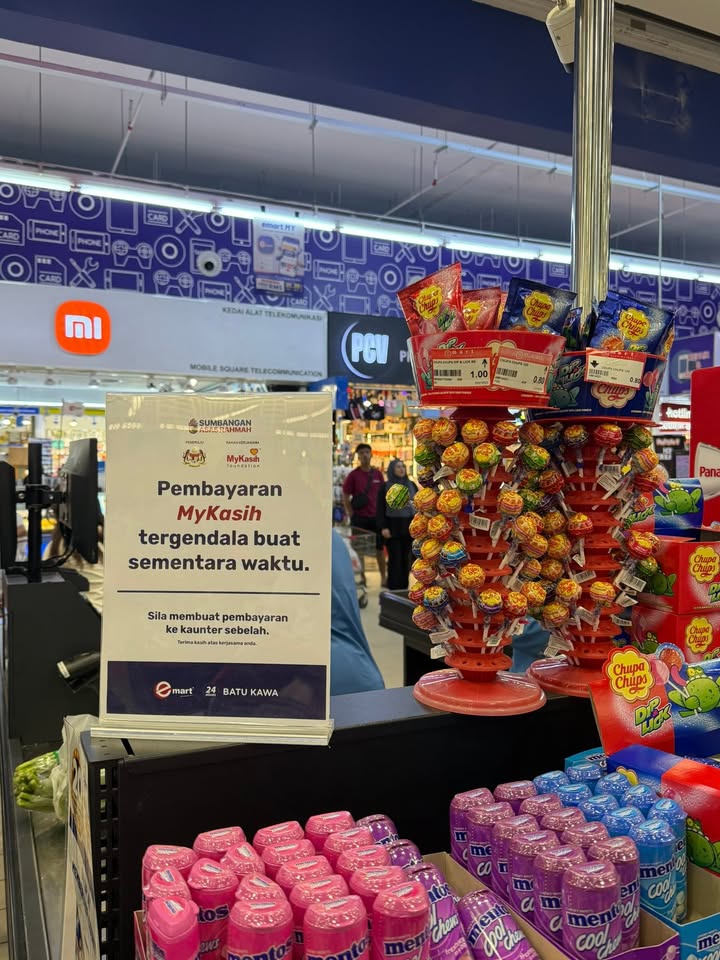 政府国庆日发放的100令吉爱心援助金(SARA)今天还是系统大当机,很多人选了日常用品来到付款柜台看到通告,就把推车弃在一旁失望离开。