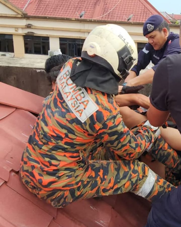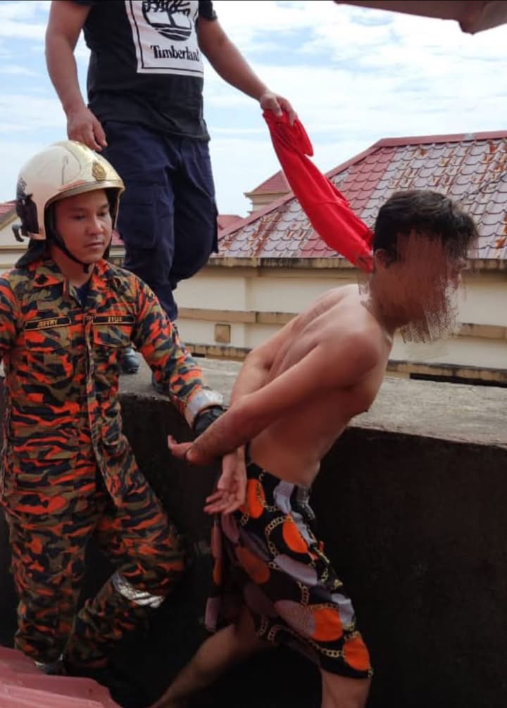 事情发生在石角MJC一栋店面上。消拯局在今天凌晨3点40分也曾接到同样的报警电话,不过当时队伍到场,却没见到人。今早再接通报,在商店大楼的屋顶上发现一名成年男子躺着,并企图自杀。