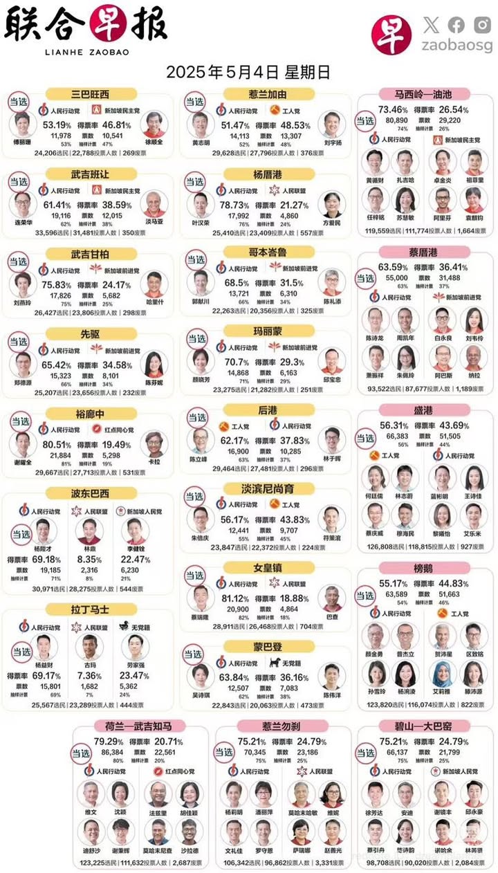 黄循财支持率比2020年李显龙时期的61.23%还高,支持率达到65.57%,当选议席87个;而且在3个选区的得票率超过80%,是行动党自2001年来最好的成绩。