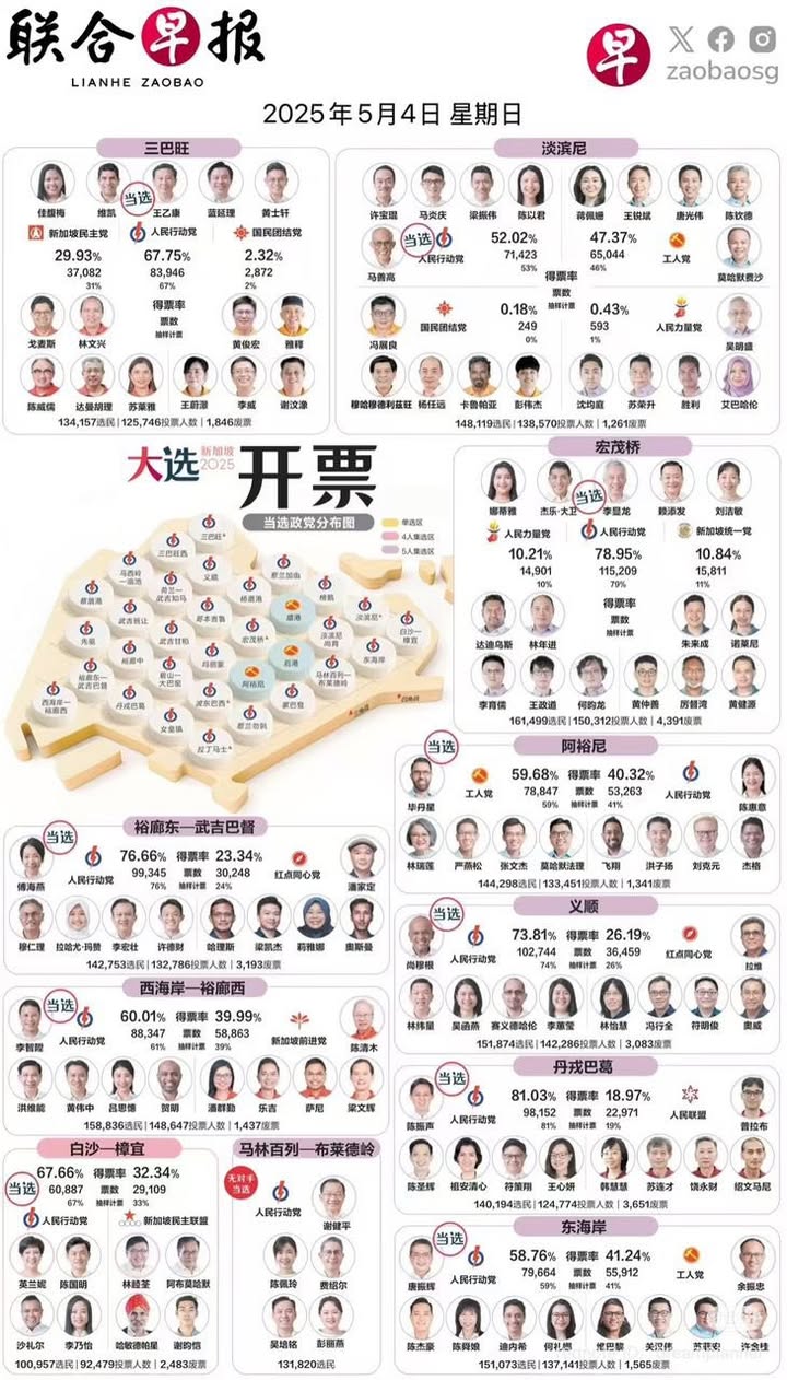 新加坡行动党(PAP)再次赢下了昨天的大选!黄循财第一次以总理的身份领军,获得更高的支持率。