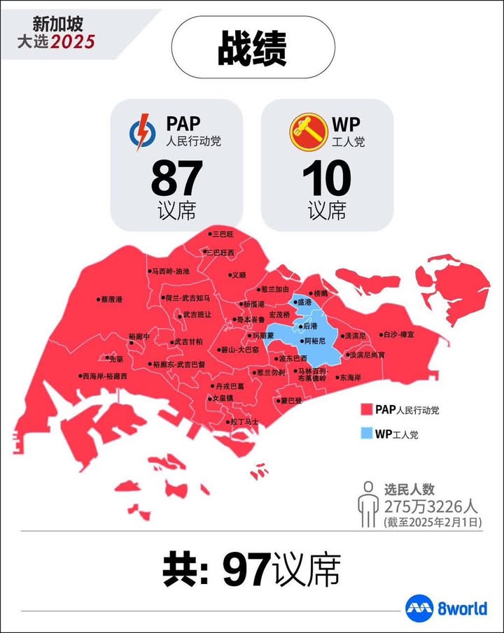 新加坡行动党(PAP)再次赢下了昨天的大选!黄循财第一次以总理的身份领军