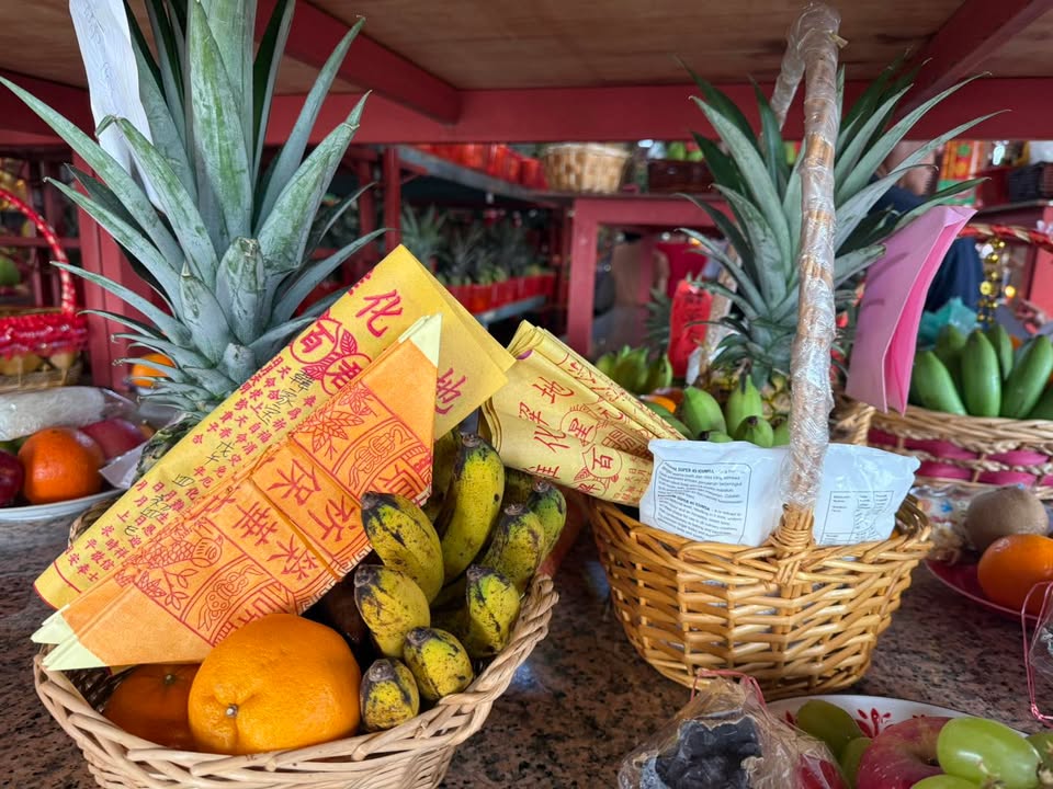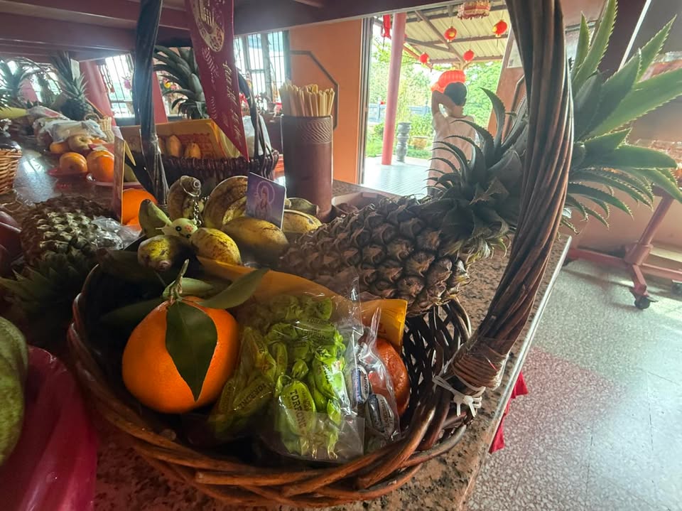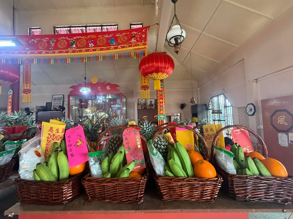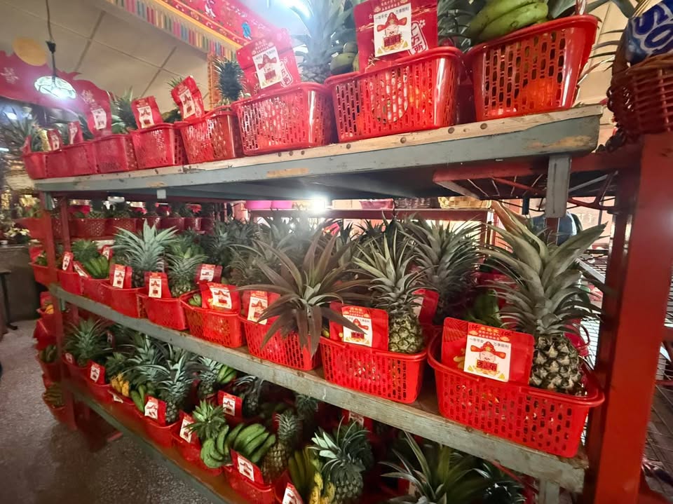 原来明天是拜贵人的好日子,古晋众善堂庙宇满满都是来拜贵人的水果篮,大家先霸好位子,明天再过来拜拜把贵人请回家。
