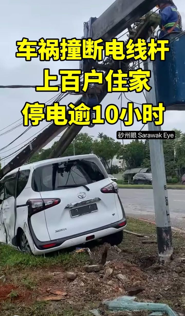 昨晚一场车祸,两名司机都受轻伤。这一撞影响很大,撞断了电线杆,导致上百户人家停电超过10小时。