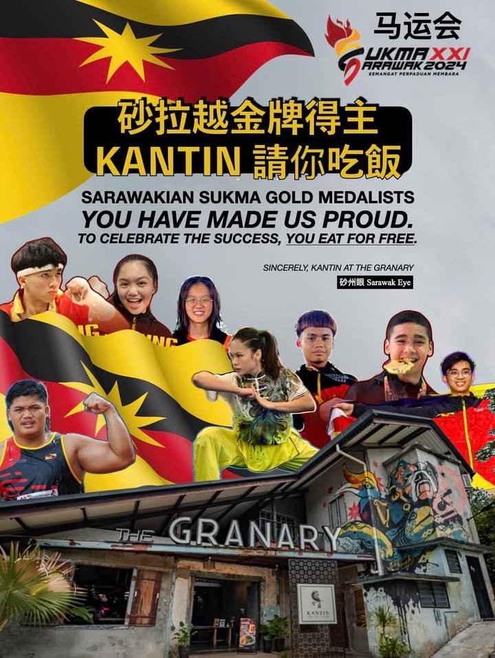 只要是本届SUKMA金牌得主,在 8月22-31日前往KANTIN at The Granary 用餐,即可免费任点主食和饮料。银牌和铜牌得主可享有免费饮料和甜点。此优惠只限砂拉越选手。