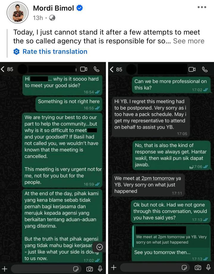 来自砂拉越的国会议员(MP)Mordi Bimol,致函有关当局探讨民生问题, 结果约好的开会,被取消也没通知。