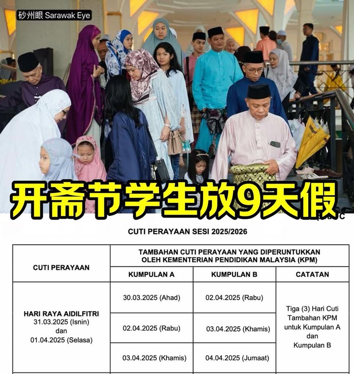 来临的开斋节🌙中小学生可以爽爽放9天假期!