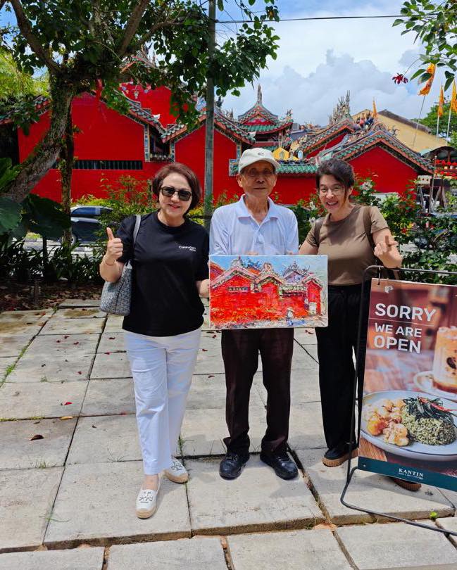 前几天张老师在古晋凤山寺进行写生,也和主编卡门彼此分享的文化和艺术体验。
