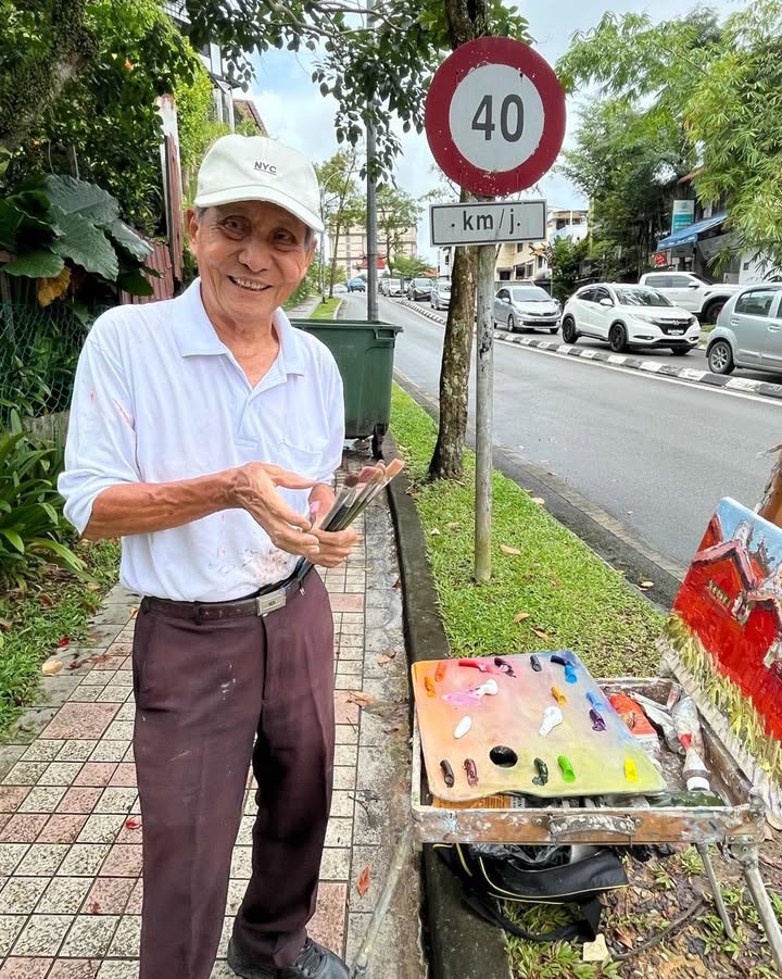 画印象派油画的拿督张汉发,83多岁仍在太阳底下作画。他是槟城国宝级的画家,也是第一个以画见证槟城第二大桥诞生的本地人,曾受邀到世界各地参与画展。