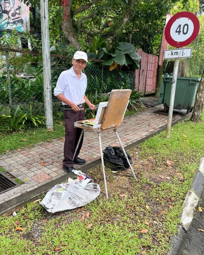 画印象派油画的拿督张汉发,83多岁仍在太阳底下作画。他是槟城国宝级的画家,也是第一个以画见证槟城第二大桥诞生的本地人,曾受邀到世界各地参与画展。