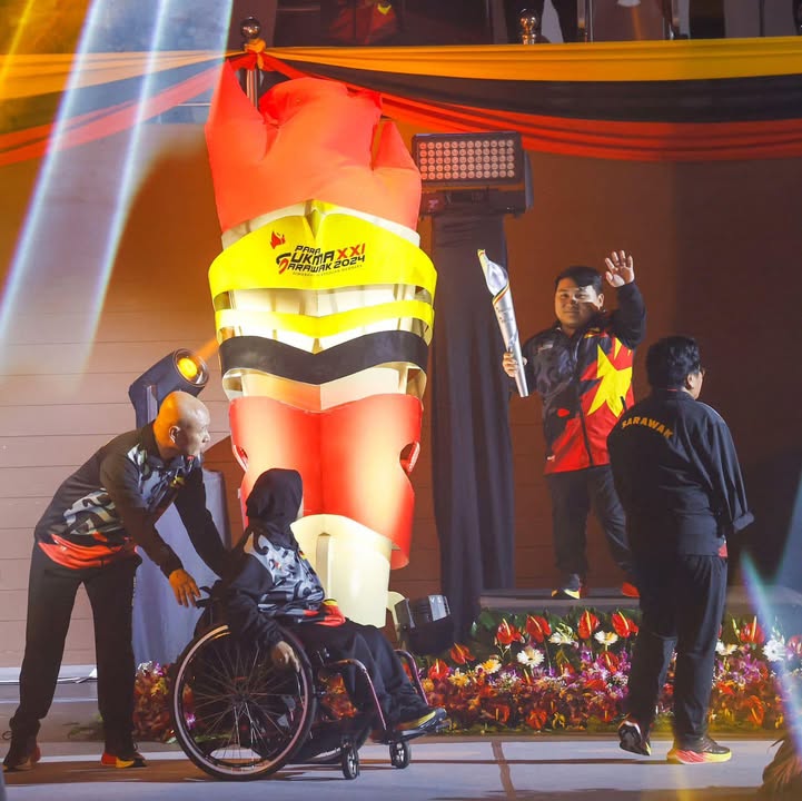昨晚Para Sukma的开幕礼也由刚从残奥会拿回金牌的砂拉越举重选手Bonnie Bunyau点燃圣火,传递体育精神。