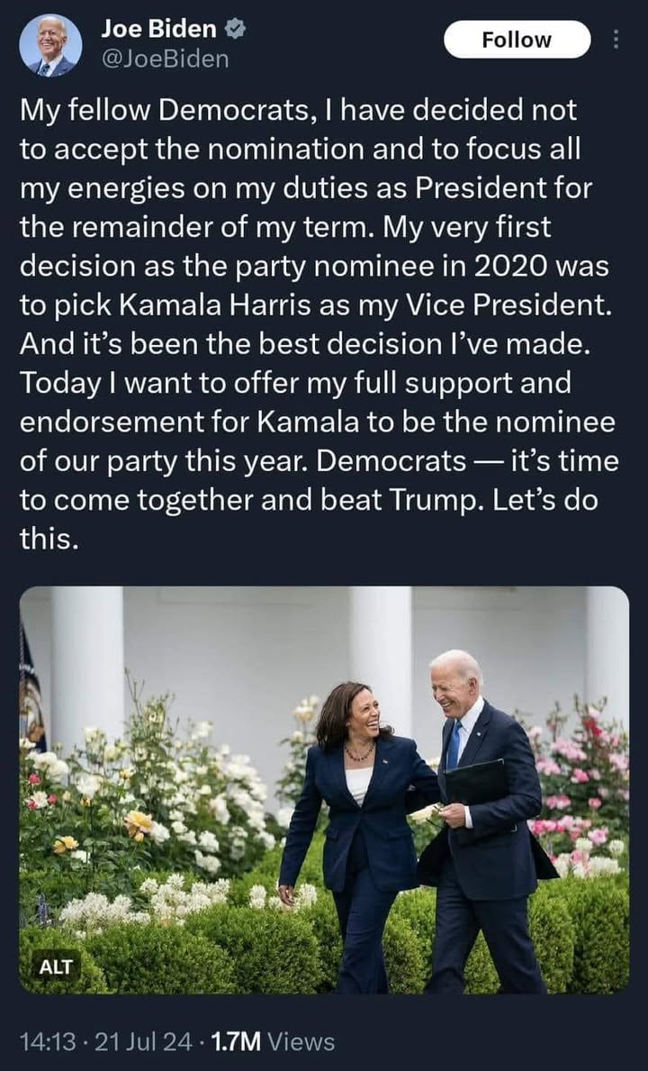 Home新闻快报犹如一颗震撼弹!美国现任总统拜登昨天(7月21日)宣布退选 新闻快报 犹如一颗震撼弹!美国现任总统拜登昨天(7月21日)宣布退选 By sarawakeyeadmin July 22, 2024 0 21 Share FacebookTwitterPinterestWhatsApp 犹如一颗震撼弹!美国现任总统拜登昨天(7月21日)宣布退选。 他在社媒上发出一封致美国人的信,回顾过去三年半美国取得的经济外交等成就,并宣布将退出2024年美国总统竞选,并支持提名副总统哈里斯为民主党总统候选人。 View on Facebook Share FacebookTwitterPinterestWhatsApp Previous article明天722Next article祝大家722快乐 sarawakeyeadminhttps://sarawakeye.my 相关文章 新闻快报 一边淹水 January 10, 2026 新闻快报 古晋市区的商家们 January 10, 2026 新闻快报 这位大哥已经两天不能下来古晋上班了 January 9, 2026 - Advertisment - 最受欢迎 一边淹水 January 10, 2026 古晋市区的商家们 January 10, 2026 这位大哥已经两天不能下来古晋上班了 January 9, 2026 不懂现在斯里阿曼通往西连的路已经通畅了吗? 这是今早发生在甘榜Pelagus 附近路段的车祸 January 9, 2026 Load more