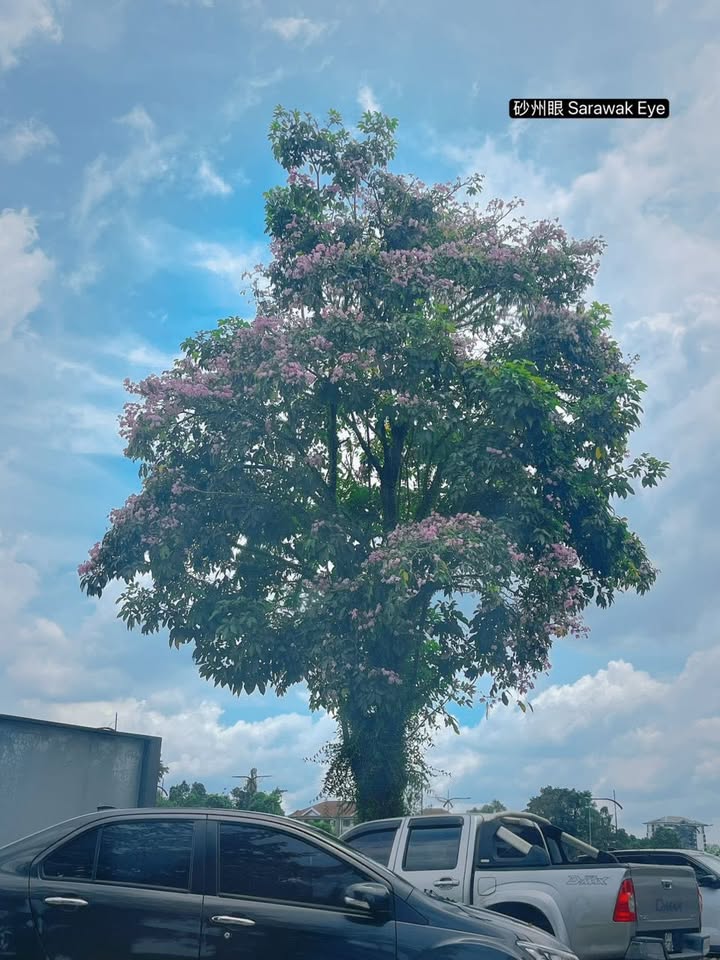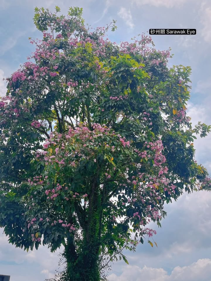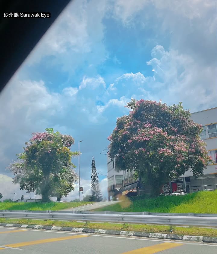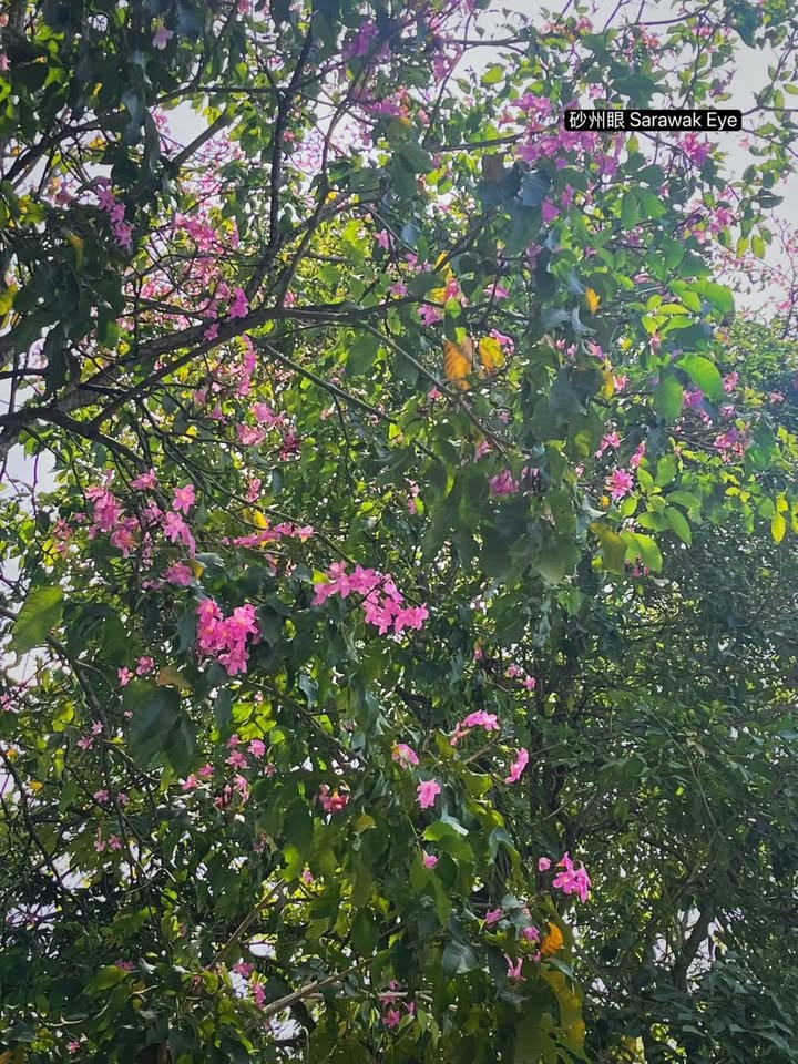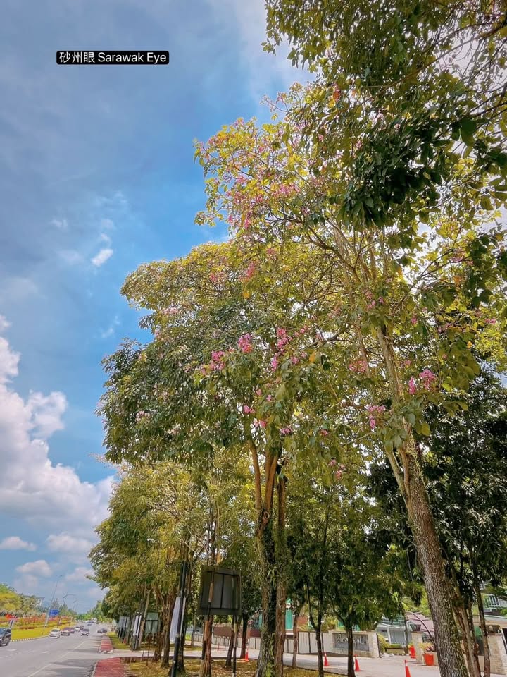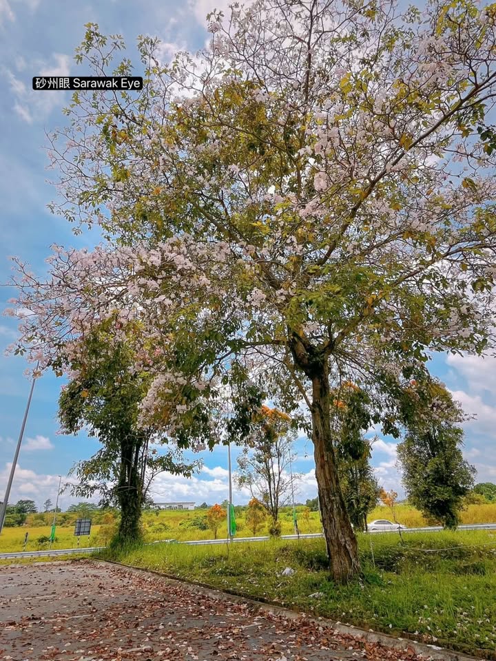 古晋的风铃木开始开花了,尽管是大热天,看见一片粉红或纯白的花朵,还是感受到了一点秋天的凉意。