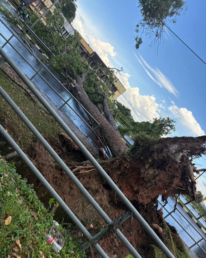 只是下午2:30pm时还是炎热大太阳,最近天气说变就变,突然一场倾盆大雨,数十年老树也不堪一击。