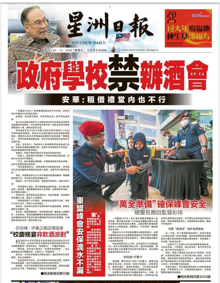 今天通讯部长法米证实,还是照样跟着之前的SOP,华校的礼堂不会受禁酒令影响,可以举办有提供酒类的宴会、筹款晚宴等。