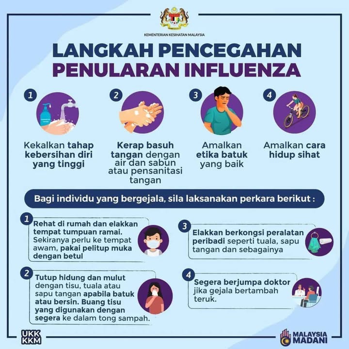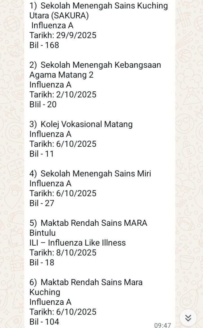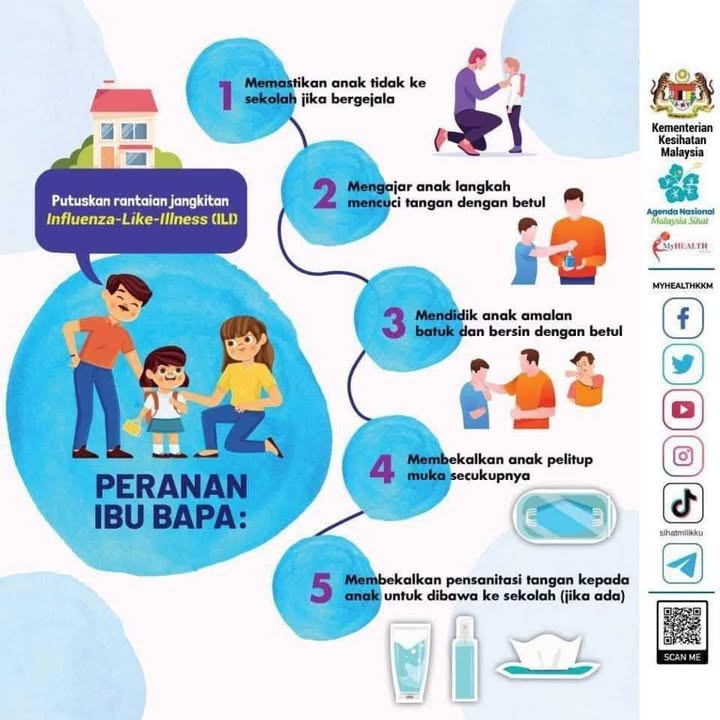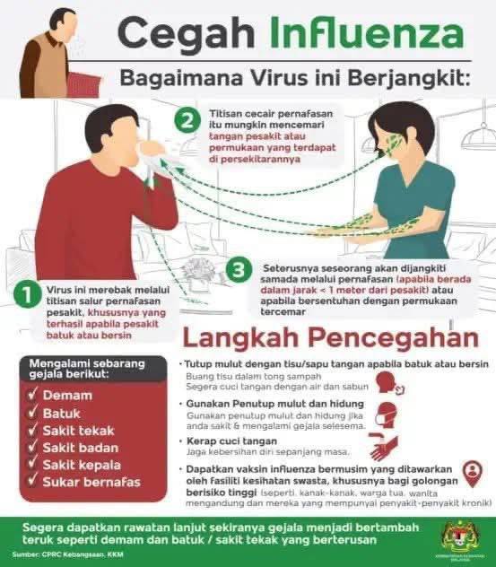 砂拉越有6所学校出现Influenza A流感病例,家长受促多注意,孩子生病就要尽量避免到学校,戴好口罩😷