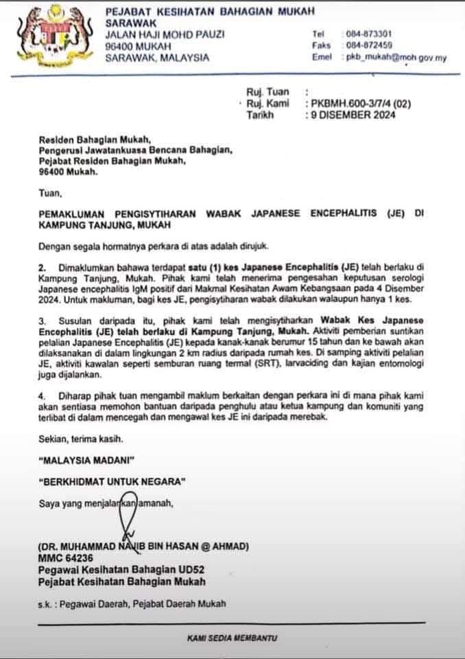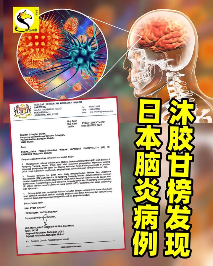 砂拉越除了再发现非洲猪瘟病例,今天在沐胶Kampung也被公布出现一宗日本脑膜炎病例。